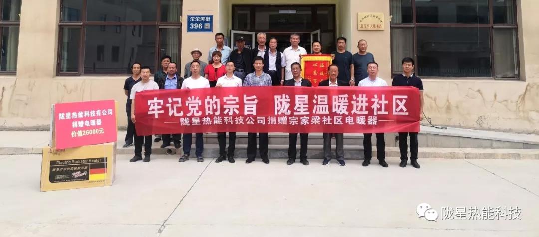 隴星熱能科技公司副總經(jīng)理、銷售公司總經(jīng)理劉靜,副總經(jīng)理、廠長(zhǎng)葉仲權(quán),辦公室主任張志遠(yuǎn),區(qū)域經(jīng)理漆全勝代表公司參加了此次愛(ài)心捐贈(zèng)活動(dòng)。劉靜在捐贈(zèng)儀式說(shuō):“隴星公司1998年成立,公司以生產(chǎn)采暖散熱器、太陽(yáng)能集熱器為主,集科研、制造、營(yíng)銷為一體。2015年隴星響應(yīng)甘肅省及蘭州市政府出城入園的號(hào)召,隴星工廠從高新區(qū)搬遷至蘭州新區(qū),并積極投身蘭州新區(qū)的建設(shè),創(chuàng)造了良好的經(jīng)濟(jì)效益和社會(huì)效益。同時(shí)隴星熱能科技公司牢記黨的宗旨,肩負(fù)社會(huì)責(zé)任,熱心公益事業(yè)。今天受隴星集團(tuán)領(lǐng)導(dǎo)及公司領(lǐng)導(dǎo)的委托,給宗家梁社區(qū)民俗文化中心捐贈(zèng)13臺(tái)電暖器,解決冬季采暖的問(wèn)題,把隴星溫暖送進(jìn)宗家梁社區(qū)。”蘭州新區(qū)中川園區(qū)管委會(huì)黨委員管委會(huì)副主任曾凡彬在會(huì)上向隴星熱能科技公司表示感謝,對(duì)隴星公司的公益精神給予了高度認(rèn)可和贊賞。