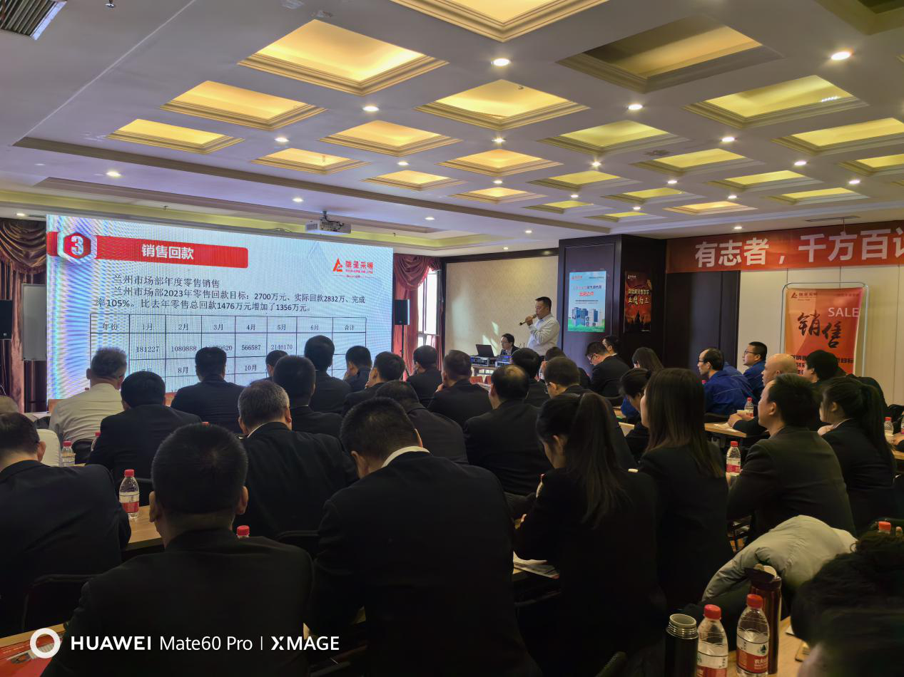 隴星集團副總、隴星熱能科技公司總經理趙明珠先生為會議致辭,趙總說:“2024年市場的機遇與挑戰并存,面臨激烈的市場競爭,我們銷售中心所有人要認真領會、貫徹、落實集團總經理吳總的要求,在新的一年里,鼓足干勁,擼起袖子,苦干實干加巧干,穩零售,促工程;推新品,增銷量;立足市場,深挖客戶,服務制勝。唯有砥礪前行,方能不負韶華!”