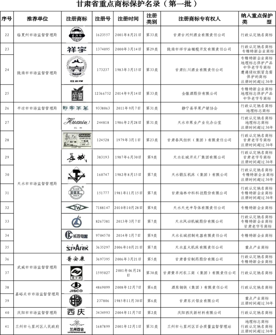 2024年11月23日,甘肅省市場監督管理局公布了《甘肅省重點商標保護名錄(第一批)》,“隴星及圖”商標成功入選。
