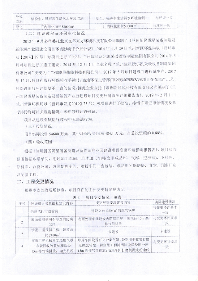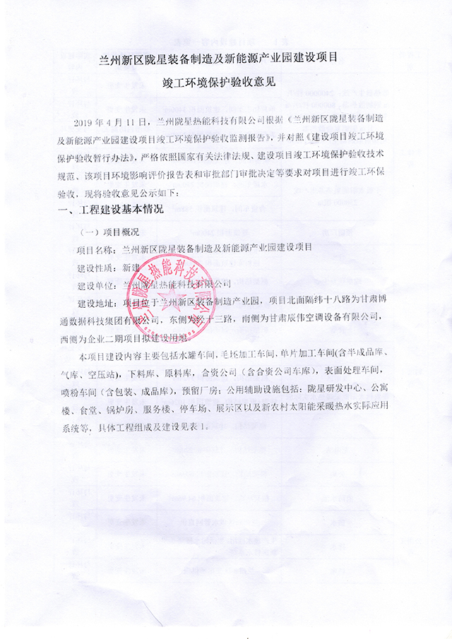 蘭州新區隴星裝備制作及新能源產業園建設項目竣工環境保護驗收意見